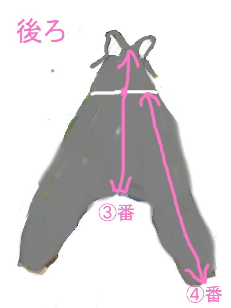 ※3番(上から股終わり)と4番(ウェストから裾先)は画像12枚目:後ろ採寸