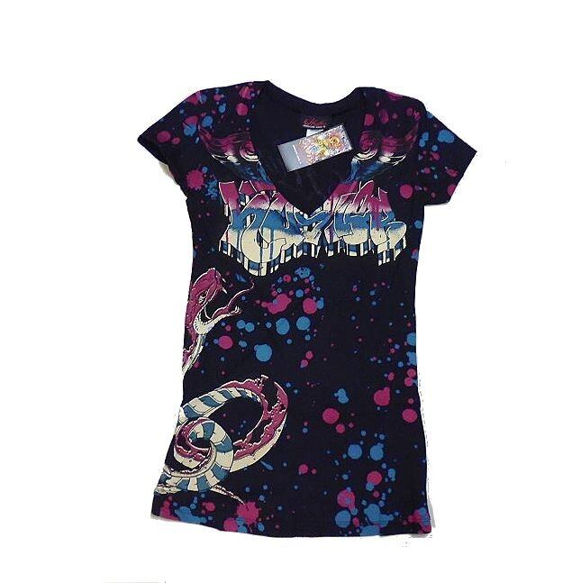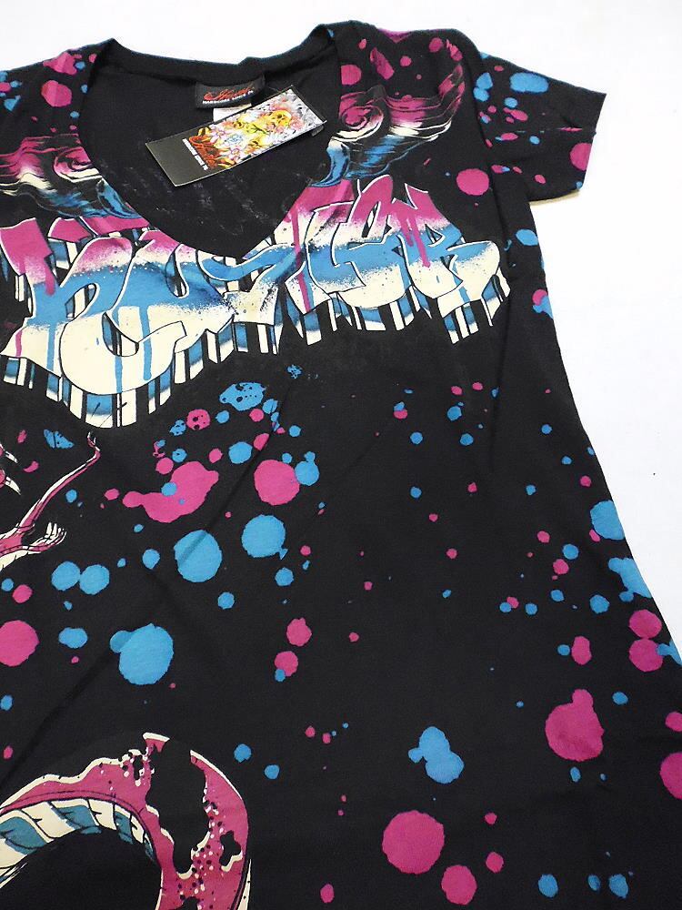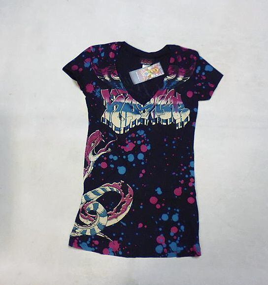 スネーク&ペンキ飛び散り柄 Vネック半袖Tシャツ /wot006